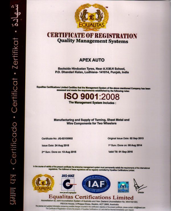Apex auto is based upon the commitment to provide its customers with high quality manufacturing and outstanding service.